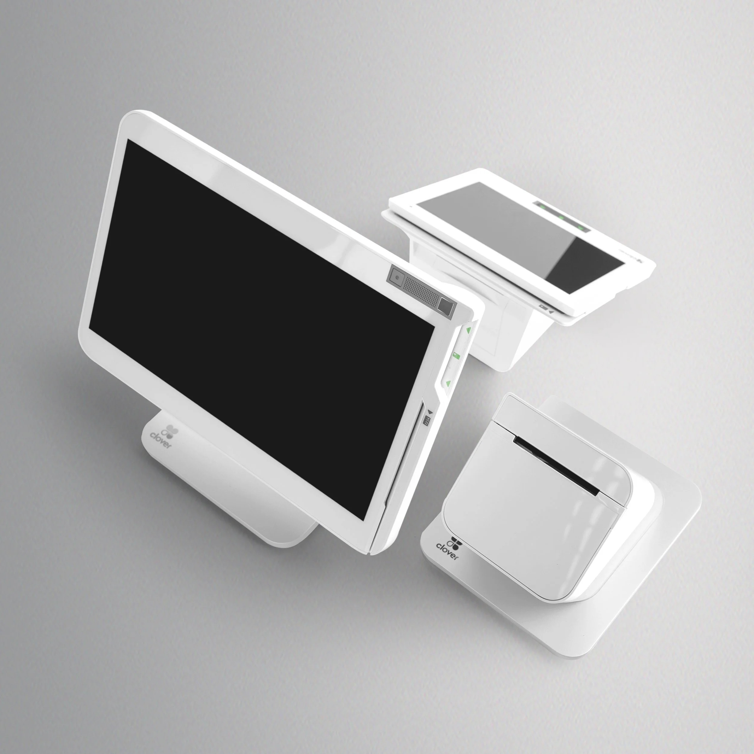 The Clover Station Duo (previously known as Station Pro) takes the powerful combination of a Mini tethered to a Station. It delivers a purpose-built, straightforward, and easy-to-set-up, packaged solution. The Station Duo includes a stationary (no swivel) merchant-facing display and a repurposed Mini that serves as the dedicated customer-facing display.